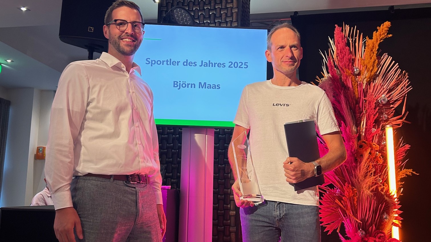 „Die Auszeichnung ist eine tolle Wertschätzung für meine erreichten Leistungen und das damit verbundene kontinuierliche Training.“ erklärt Björn Maas mit dem Pokal in der Hand. „Es freut mich besonders, dass die Sparte Triathlon mit meiner Nominierung die entsprchende Aufmerksamkeit erhalten hat. Die Kombination aus Schwimmen, Radfahren und Laufen ist wirklich ein toller Sport – auf den ich sehr stolz bin und den ich gerne so lange wie möglich erfolgreich ausüben möchte.“