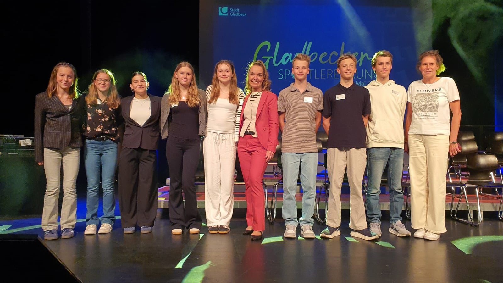 Die Stadt Gladbeck ehrte am Mittwoch den 07.05.25 im festlichen Rahmen in der Mathias-Jakobs-Stadthalle die sportlichen Leistungen der Gladbecker Sportvereine. Neben dem VfL Gladbeck 1921 e.V., dem Karate Do Gladbeck e.V., Elite SV Gladbeck e.V., dem B.G.S.C. Gut Schlag e.V., den Kanu-Freunden Wiking Gladbeck e.V., dem Schützenverein Gladbeck-Mitte e.V. 1652 e.V., Turnverein Gladbeck 1912 e.V. , BSV Wilhelm Tell Gladbeck Süd e.V. und dem DLRG Ortsgruppe Gladbeck e.V., wurde auch unser Schwimmverein mit zahlreichen Ehrengaben und Sportehrenzeichen in Bronze, Silber und Gold geehrt.